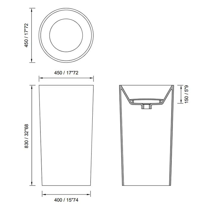Раковина Moma Diamond Tower 450 отдельностоящая, слив в пол, с донным клапаном, белый матовый DMN0505.MWS