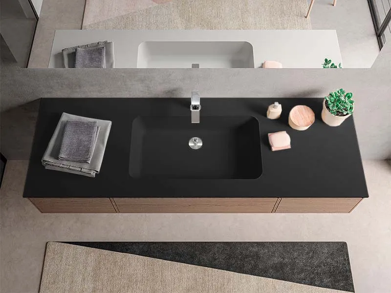 Раковина керамическая QUADRA, 121х51,5 см, с одним отверстием под смеситель, для тумбы SUVBS(2C/3C), цвет черный матовый. Продается только в комплекте с тумбой.