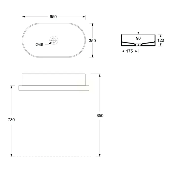 Раковина накладная Alice Hide Stadium 65x35хВ12, без отверстия под смеситель, белый матовый, 31120109