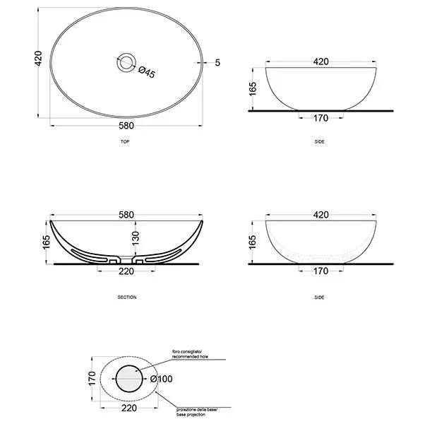 Раковина накладная Cielo Era Eco BAECO58 TL.