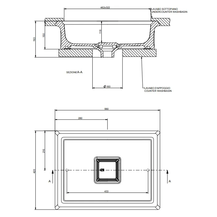 Для установки под столешницей требуется комплект для крепления RIR4268