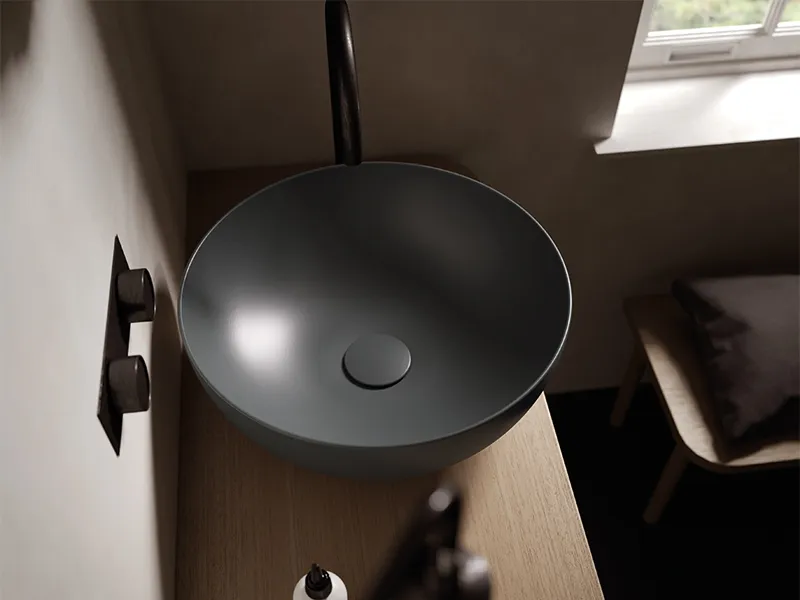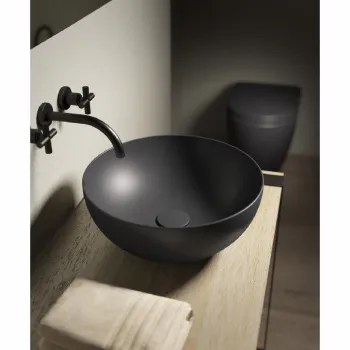 Раковина накладная HATRIA HAPPY HOUR A0Y1VF08, без отверстий для смесителя, без перелива, диаметр 40 см, цвет антрацит.