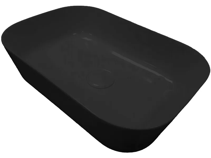 Раковина накладная HATRIA HAPPY HOUR A0Y2A002 с тонкими стенками, без отверстий для смесителя, без перелива, размер 55x38 см, цвет черный матовый. Донный клапан и сифон приобретаются отдельно.