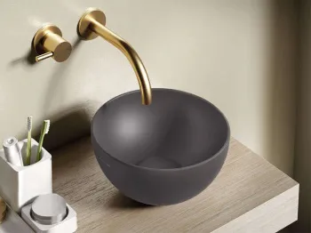 Раковина накладная HATRIA HAPPY HOUR A0Y5A508, без отверстий для смесителя, без перелива, диаметр 25 см, цвет антрацит. Донный клапан и сифон приобретаются отдельно.