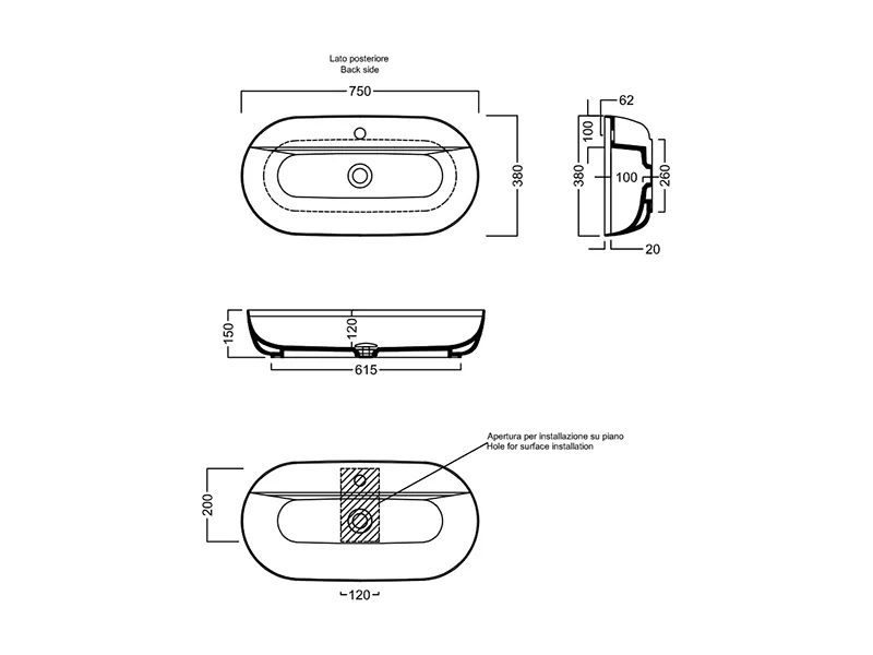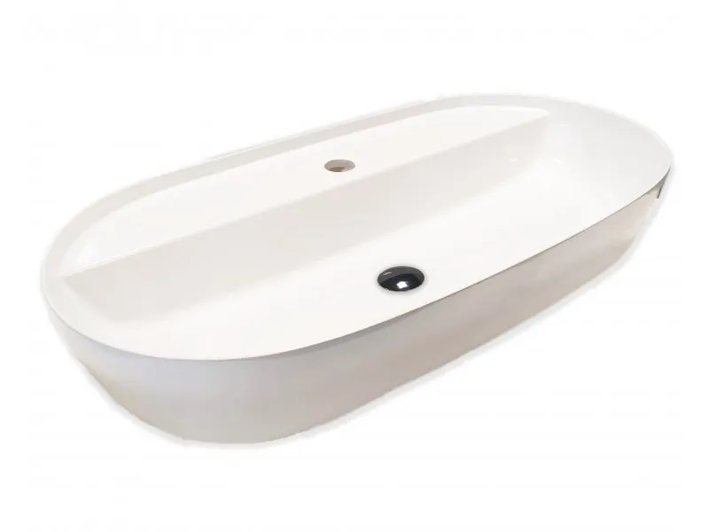 Размеры накладной раковины: 75 x 38 x 15 см, что делает ее идеальным выбором для небольших ванных комнат. Раковина имеет овальную форму, что позволяет ей выглядеть современно и элегантно.