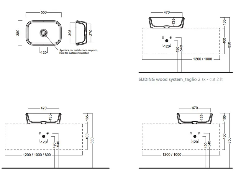 Раковина накладная HATRIA PENCIL Y1GF01, без отверстий для смесителя, без перелива, размер 55x38 см, цвет белый.