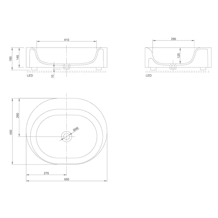 Knief 0600-032-01 MOON Раковина накладная 55х45х16 см, с подсветкой, цвет белый матовый.