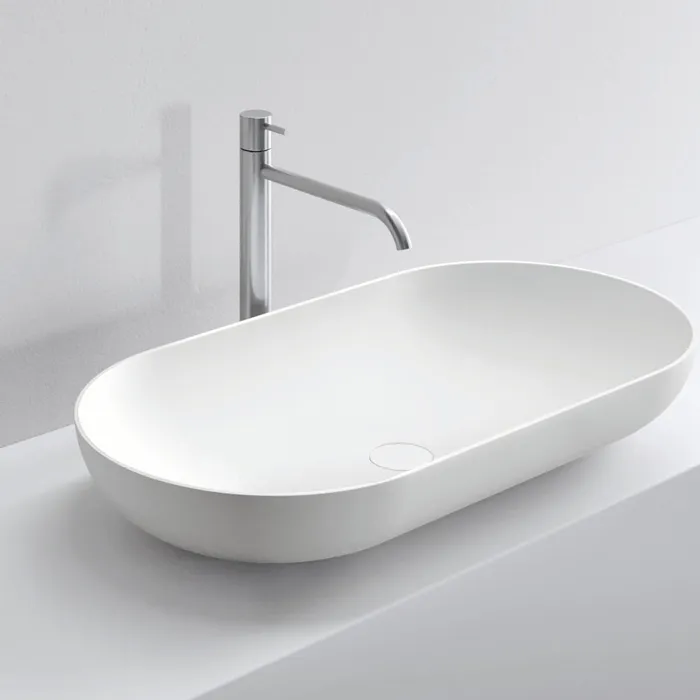 Раковина накладная Noorth Milldue Edition Blend 81х42хh13, из CRISTALPLANT, без отв для е, без перелива, с донным клапаном, белый матовый 8888.19*0 Bianco Opaco