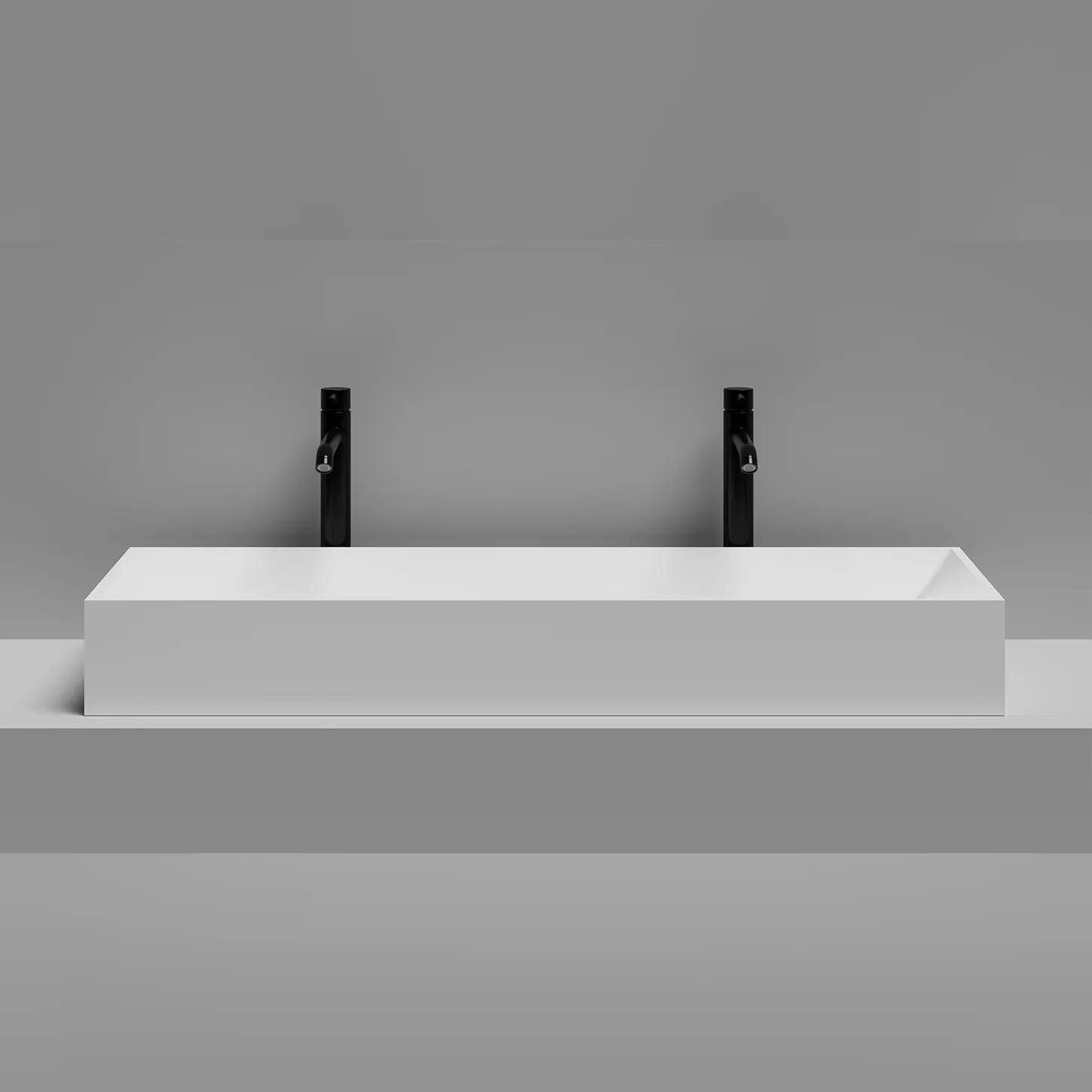 Удлинённую раковину SONATA можно разместить как накладную на тумбе DOMINO или столешнице COSTA.