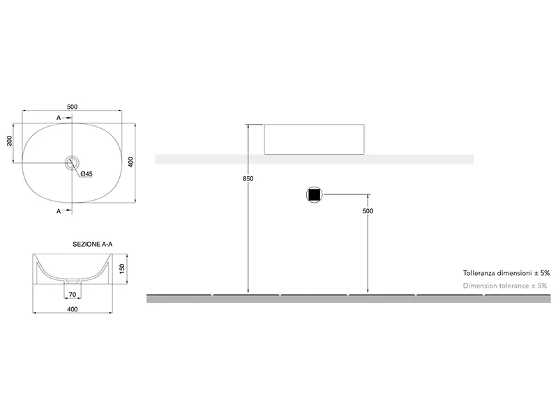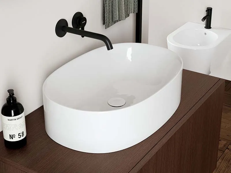 SCARABEO SKINNY 5408 Раковина накладная без отверстия под смеситель, без слива-перелива. Размеры: 50x40x15h см. Цвет White.