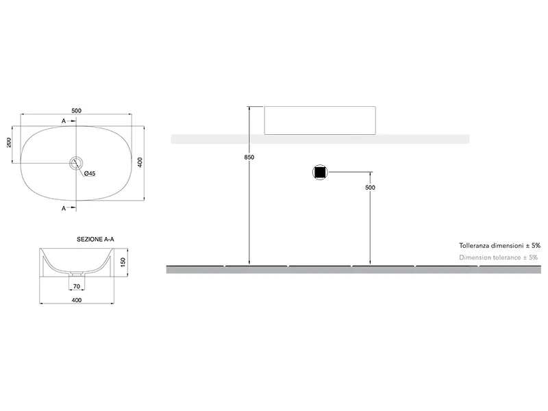 SCARABEO SKINNY 5409 Раковина накладная без отверстия под смеситель, без слива-перелива. Размеры: 60x40x15h см. Цвет White.
