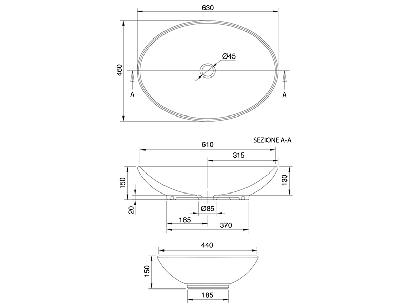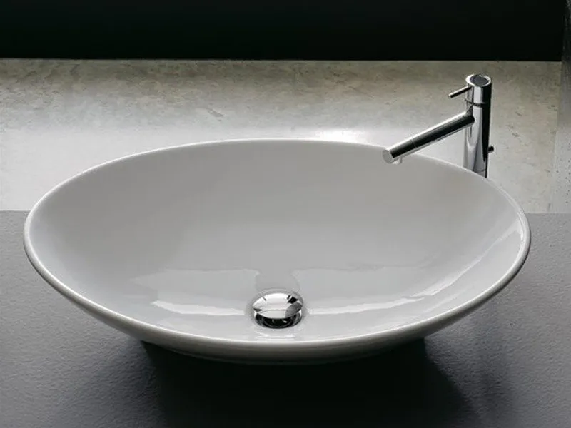 SCARABEO NECK 8045 Раковина накладная без отверстия под смеситель, без перелива. Размеры: 63x45x15h см. Рекомендуется установка на столешницу. цвет White.