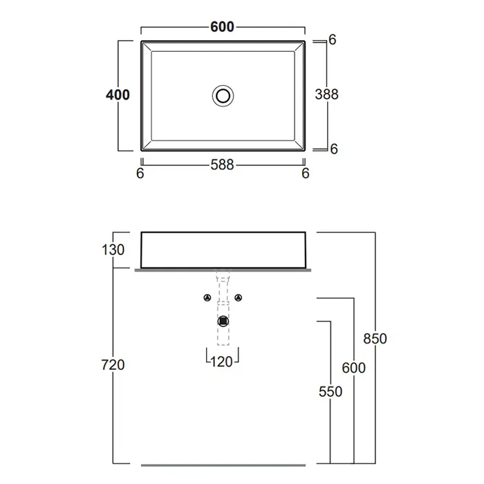Эта прямоугольная раковина устанавливается накладным способом, что делает процесс монтажа быстрым и простым.