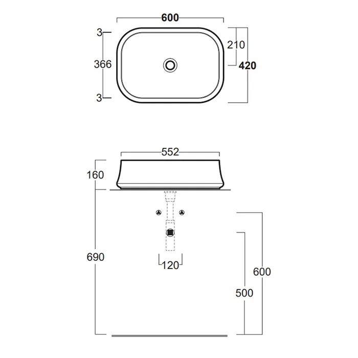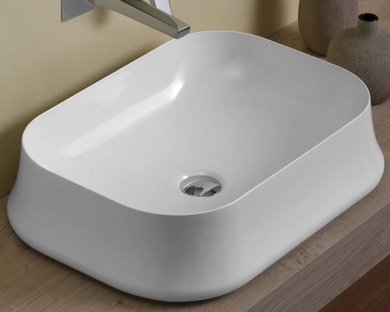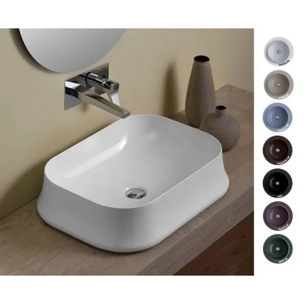 Раковина накладная SIMAS SHARP SH 08, прямоугольная, без отверстия под смеситель, без перелива, размер 60х42 см, цвет белый.
