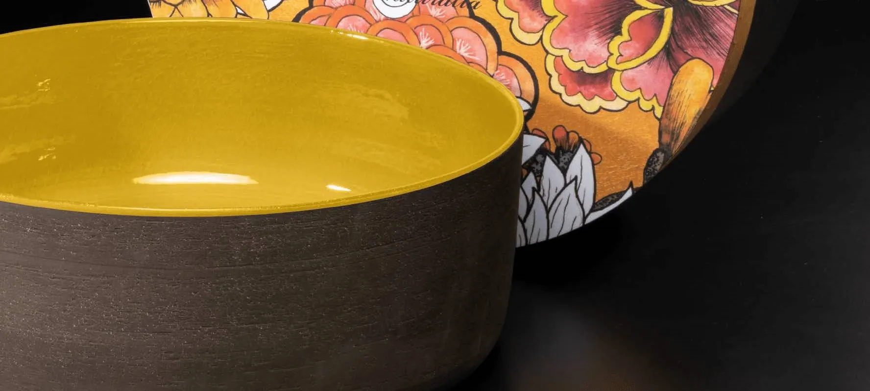 Terzofoco 0209 TNGL Раковина ABACO NERO GIALLO для установки на столешницу, размер 420*115 мм, цвет nero/giallo