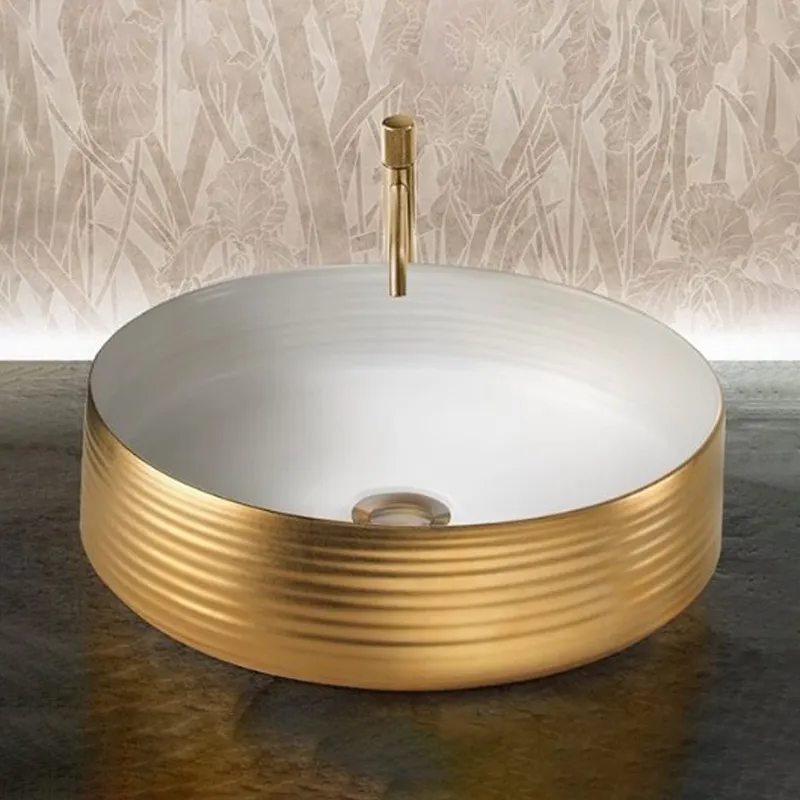 Terzofoco 0201GWG Раковина CIPPO WHITE INSIDE AND SATING GOLD OUTSIDE для установки на столешницу, размер 405*115 мм, цвет WHITE INSIDE AND SATING GOLD OUTSIDE