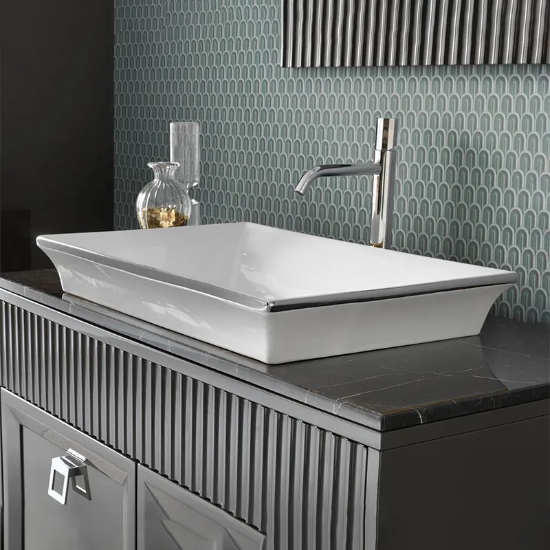 Terzofoco 0403PR Раковина MANATARES GLOSSY WHITE WITH PLATINUM RIM для установки на столешницу, размер 615*420*140 мм, цвет GLOSSY WHITE WITH PLATINUM RIM