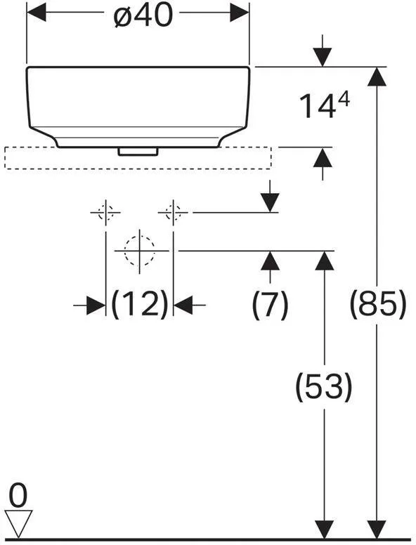 500.768.01.2 Geberit VariForm Раковина с установкой на столешницу круглой формы, D=40 см, без отв. под смеситель, без отв. перелива