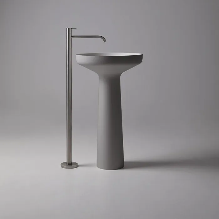 Раковина Antonio Lupi Ago 50х85, без отв., слив в пол, с сифоном, гибким шлангом и донным клапан, Flumood, внешний Cemento, внутри белый А0002451487