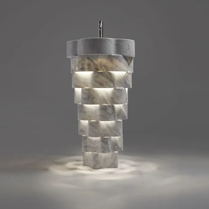 Раковина Antonio Lupi Intreccio 47x85, без отв., с LED подсветкой, с донным клапаном и сифоном, Marmo di Carrara А0002423681
