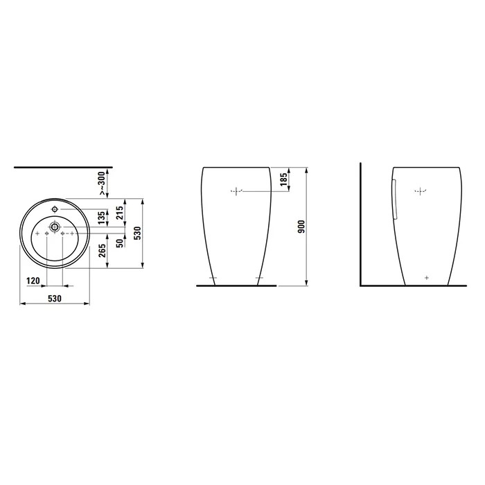 Laufen Alessi One Свободностоящая раковина 530х530х850мм без отв. под смеситель, с покр. LLC, цвет: белый