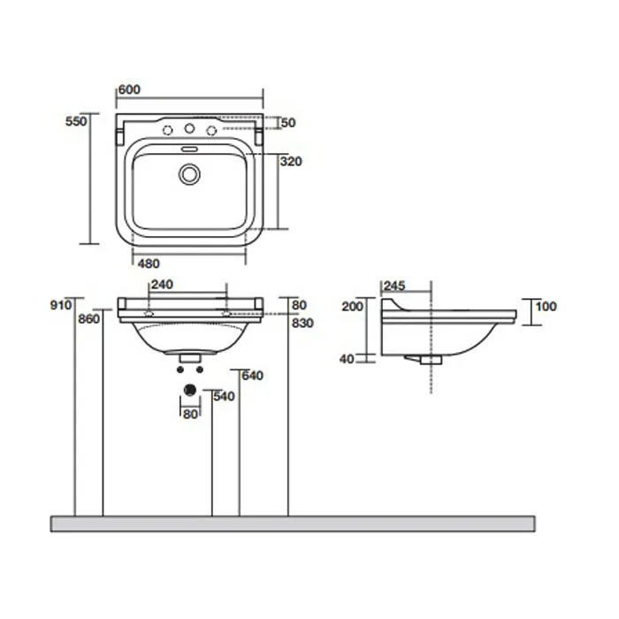 Раковина керамическая Kerasan Waldorf 60х55, c 1 отверстием под смеситель, черный, заглушка хром 4140K4 nero/cr *1