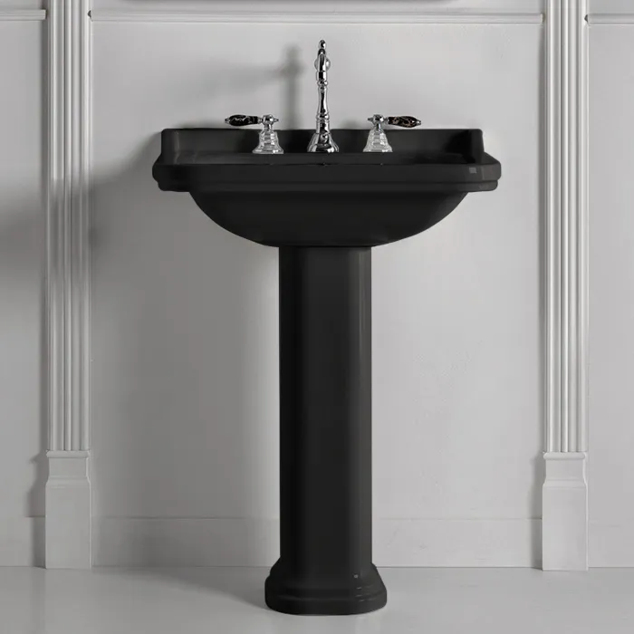 Раковина керамическая Kerasan Waldorf 80х55, c 1 отверстием под смеситель, черная, заглушки хром 4141K4nero/cr*1