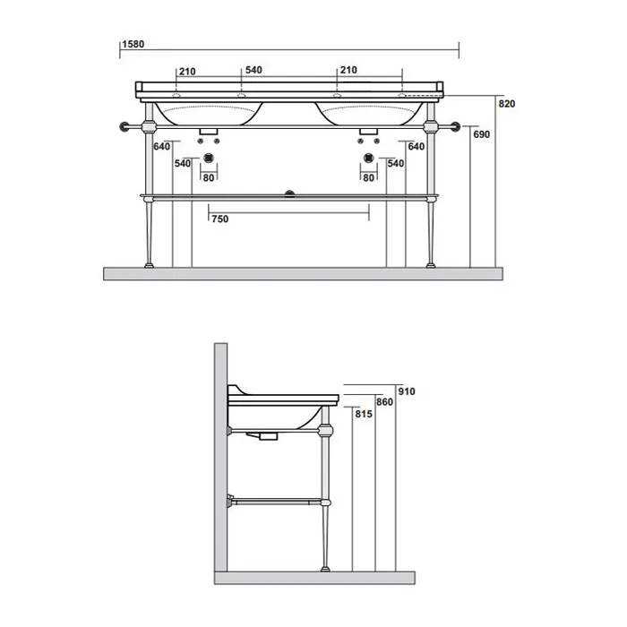 Раковина керамическая двойная Kerasan Waldorf 150х55, c 1 отверстием под смеситель, белая, заглушки хром 4143K1bi/cr*1
