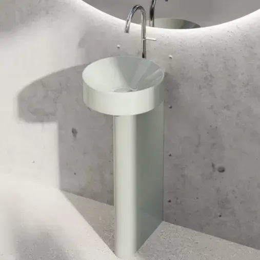 Техническая консультация: Умывальник для настенного монтажа, без перелива, со штоковым клапаном и подходящей по цвету застекленной крышкой слива. Раковина и пьедестал изготовлены из глазурованной титановой стали.