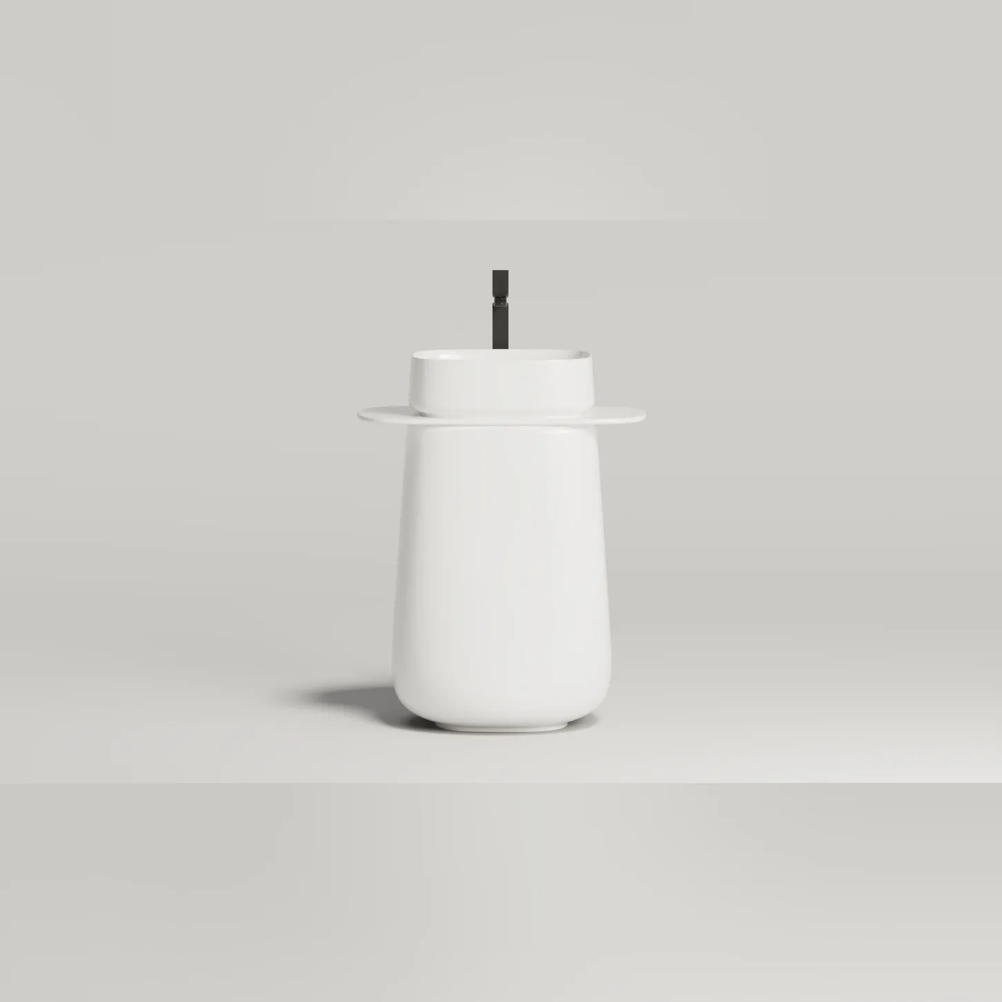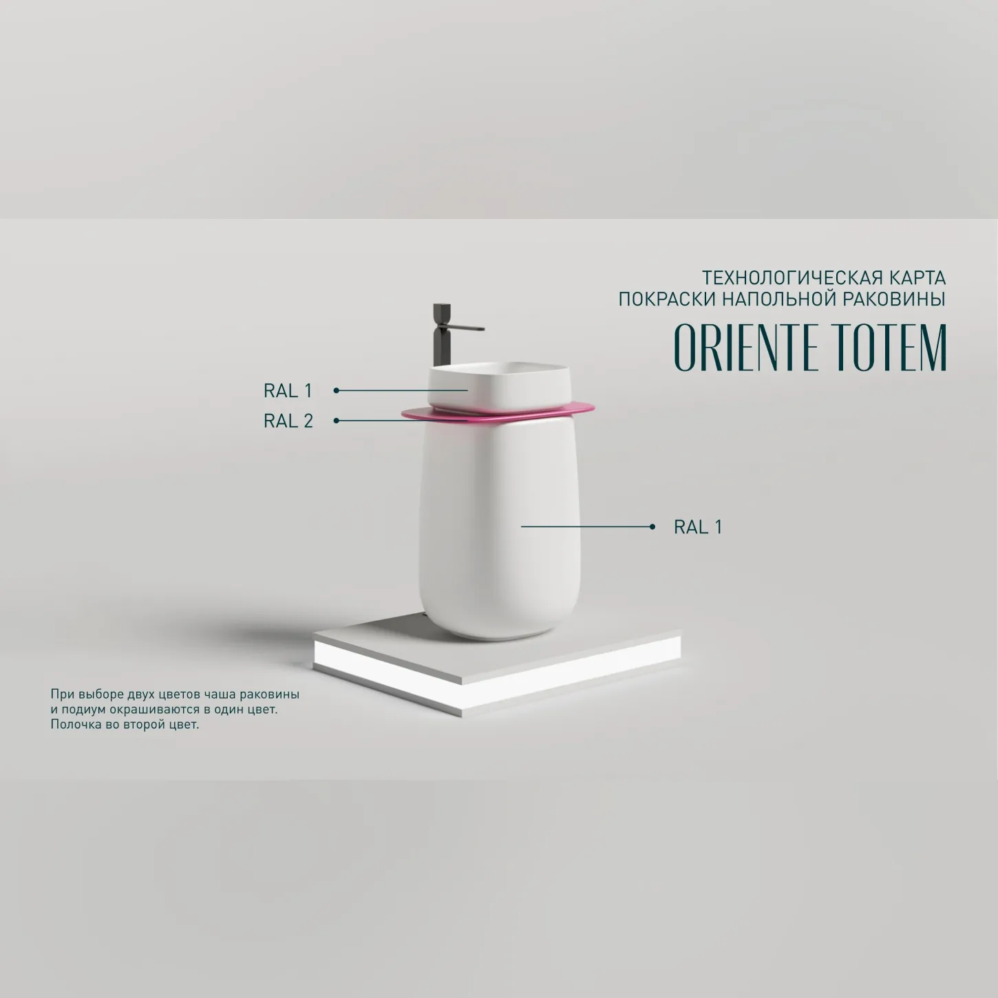 Напольная раковина ORIENTE TOTEM — один из ключевых элементов коллекции. Напоминающая миниатюрную купель, чаша раковины ORIENTE TOTEM как будто парит в воздухе за счёт скруглённого внизу постамента. Чаша традиционной формы имеет достаточно высокие бортики, чтобы исключить попадание воды за её пределы. Дополнительная столешница становится практичным дополнением продукта, на котором можно с комфортом разместить любимые аксессуары и туалетные принадлежности.