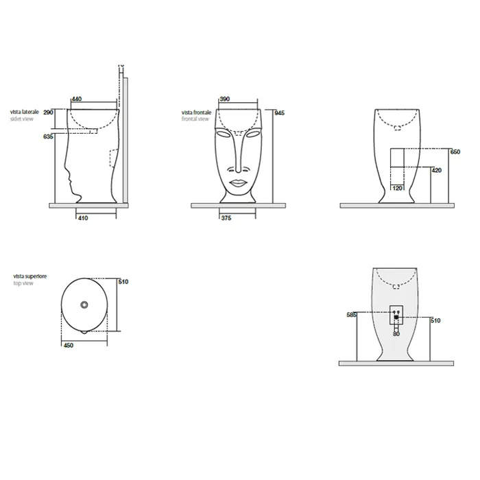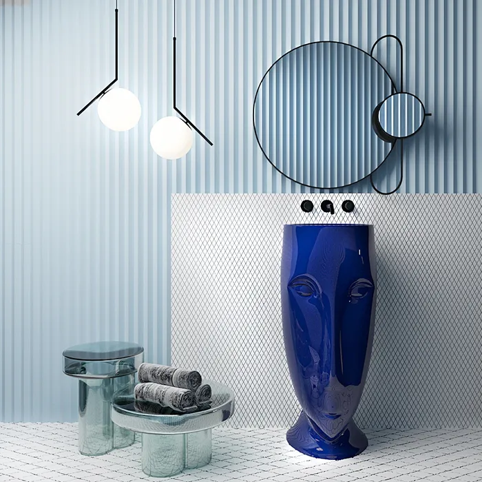 Раковина свободностоящая Kerasan Artwork Moloco, с отверстием для слива в стену, цвет; Blu cobalto lucido 474077