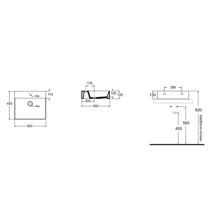 Раковина подвесная Azzurra Elegance Squared 50х45см с 1 отв. под смеситель, белый ELLP050450QMBI/(EQA50M bi)*1