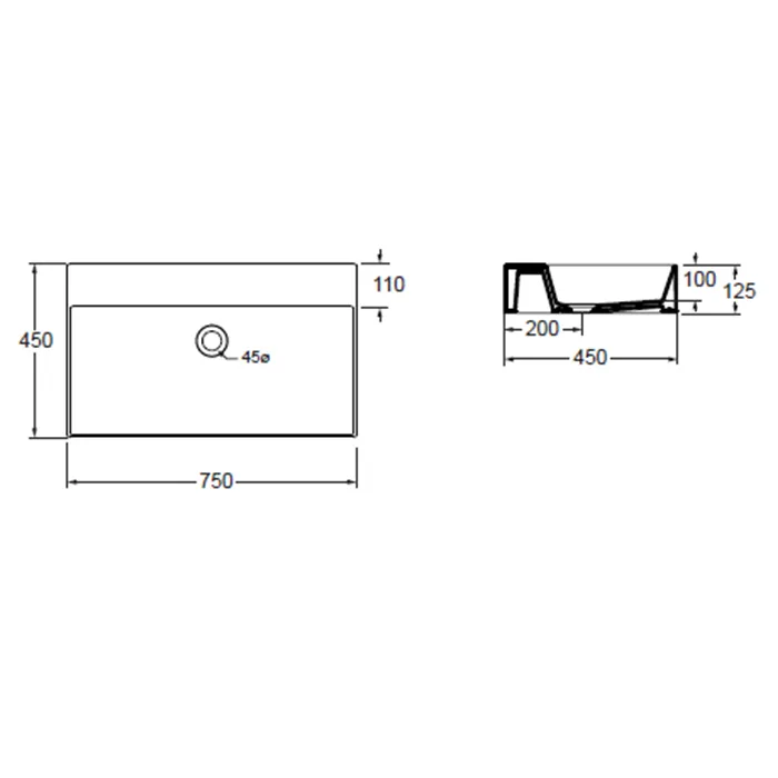 Раковина подвесная Azzurra Elegance Squared 75х45см с 1 отв. под смеситель, белый ELLP075450QMBI/(EQA75M bi)*1