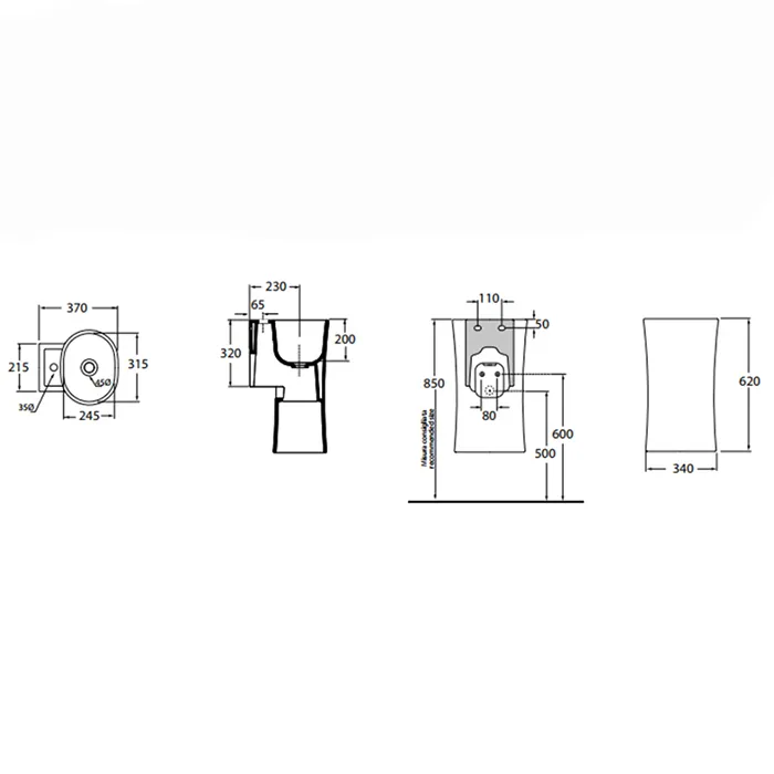 Раковина подвесная Azzurra Nativo 35х37хh62см без отв. под смеситель, с креплением, белый LALS035370N0BI/(NAT200/0bi)*0