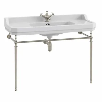 Эта большая раковина со скрытым сливом-переливом просто предназначена для роскошных интерьеров, оформленных в духе французского классицизма. И все благодаря такому элементу, как хромированное подстолье, которое придает этой модели некой неординарности.