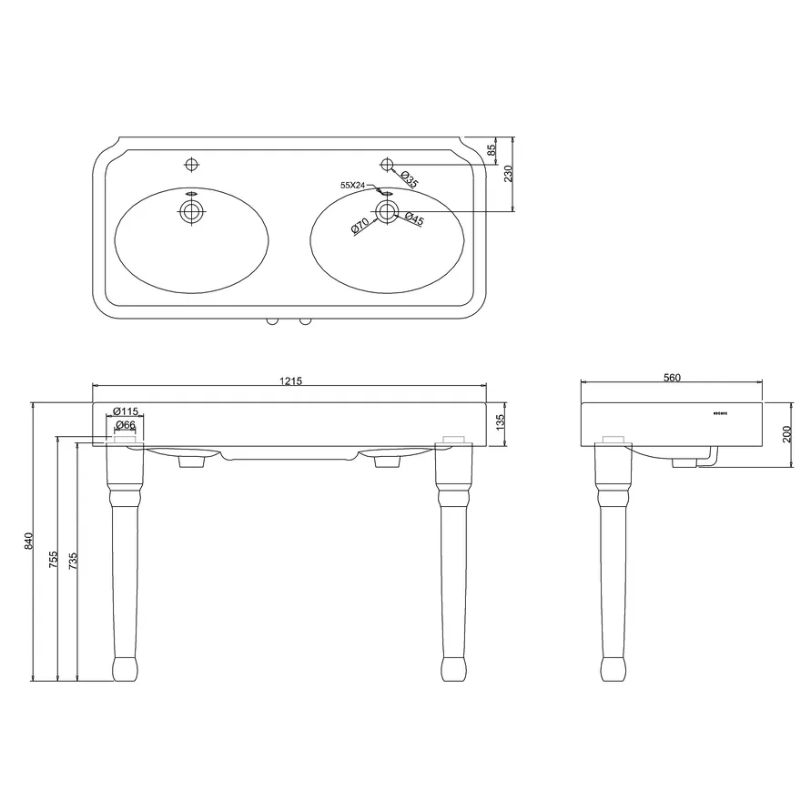 Подвесная раковина Burlington Arcade ARC1200 1TH никель
