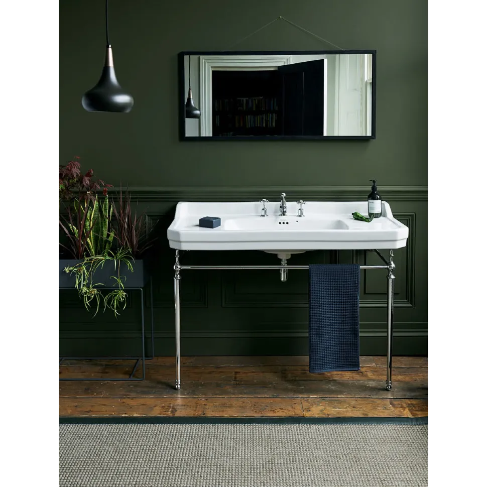Эта большая раковина со скрытым сливом-переливом просто предназначена для роскошных интерьеров, оформленных в духе французского классицизма. И все благодаря такому элементу, как хромированное подстолье, которое придает этой модели некой неординарности.