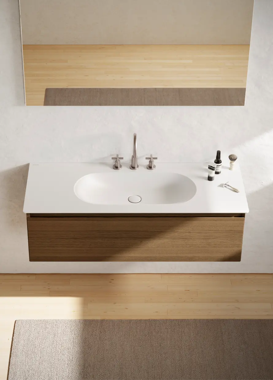 Эта раковина из коллекции Sfera от бренда Catalano произведена в Италии. Ее размеры составляют 125 см в ширину, 50 см в глубину и 14,5 см в высоту. Раковина выполнена из керамики с матовой поверхностью, и благодаря отсутствию отверстий под смеситель, она сохраняет чистоту линий и современный стиль.