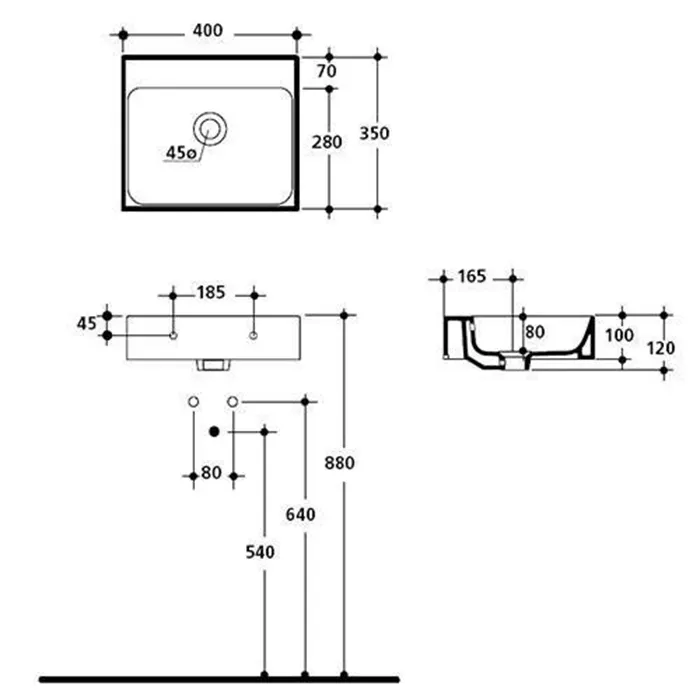 - Отверстия под смеситель: Без отверстий