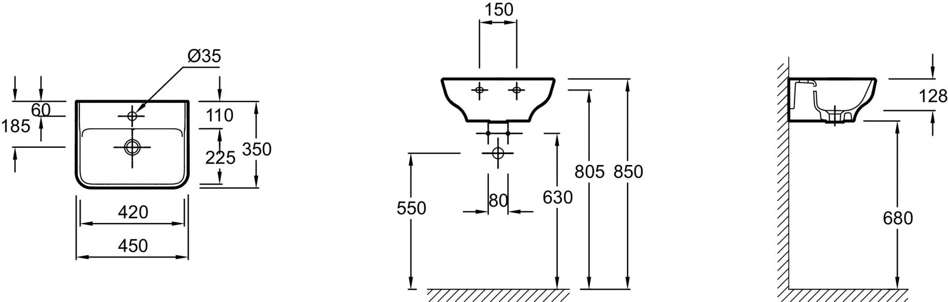 Раковина 45 см Jacob Delafon Struktura EGH111-00, белый белый