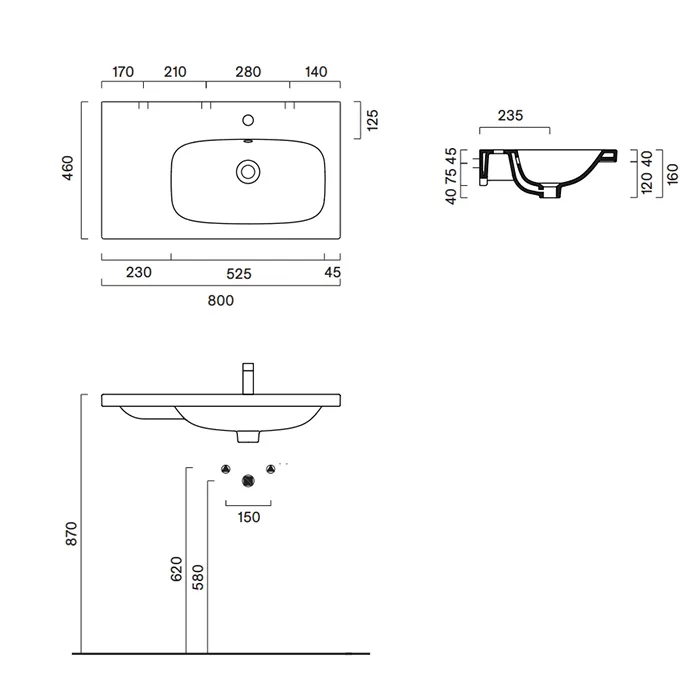 Раковина Catalano Alvea 80x46 чаша справа, без отв, белый глянцевый 620830001