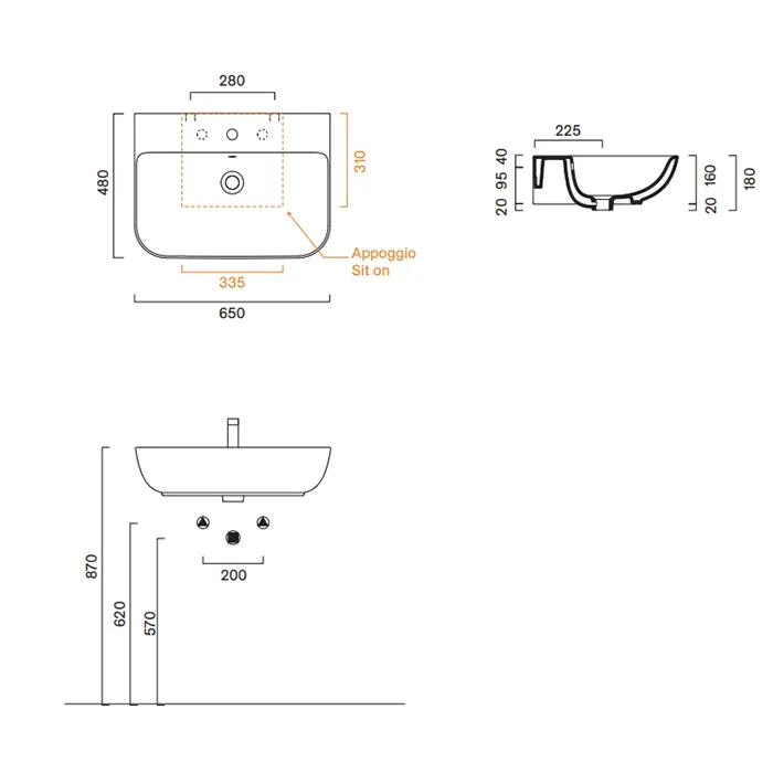 Раковина Catalano Italy 65x48, с 1 отв, белый глянцевый 720651001