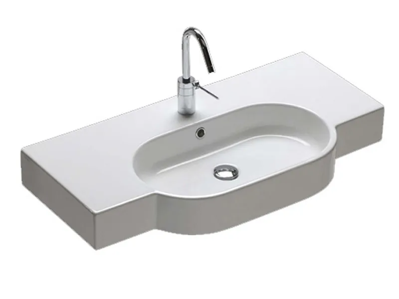 Раковина подвесная\встраиваемая HATRIA AREA YXA001,с переливом, размер 90х45x14.5 см, цвет белый. Раковина поставляется под смеситель на одно отверстие посередине, по запросу можно выполнить три отверстия. Может дополняться хромированным полотенцедержателем, донным клапаном и сифоном. Устанавливается на стены с помощью крепежа (приобретается отдельно), устанавливается на мебель, столешницы и подстолья.