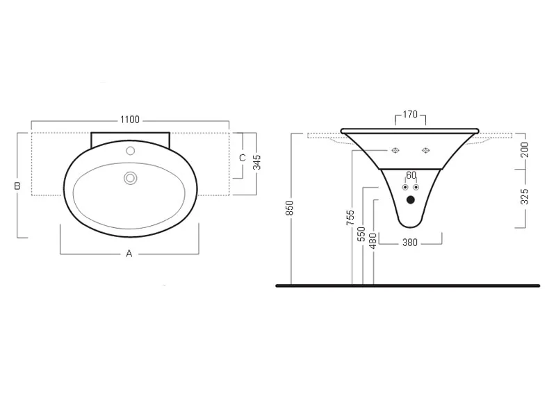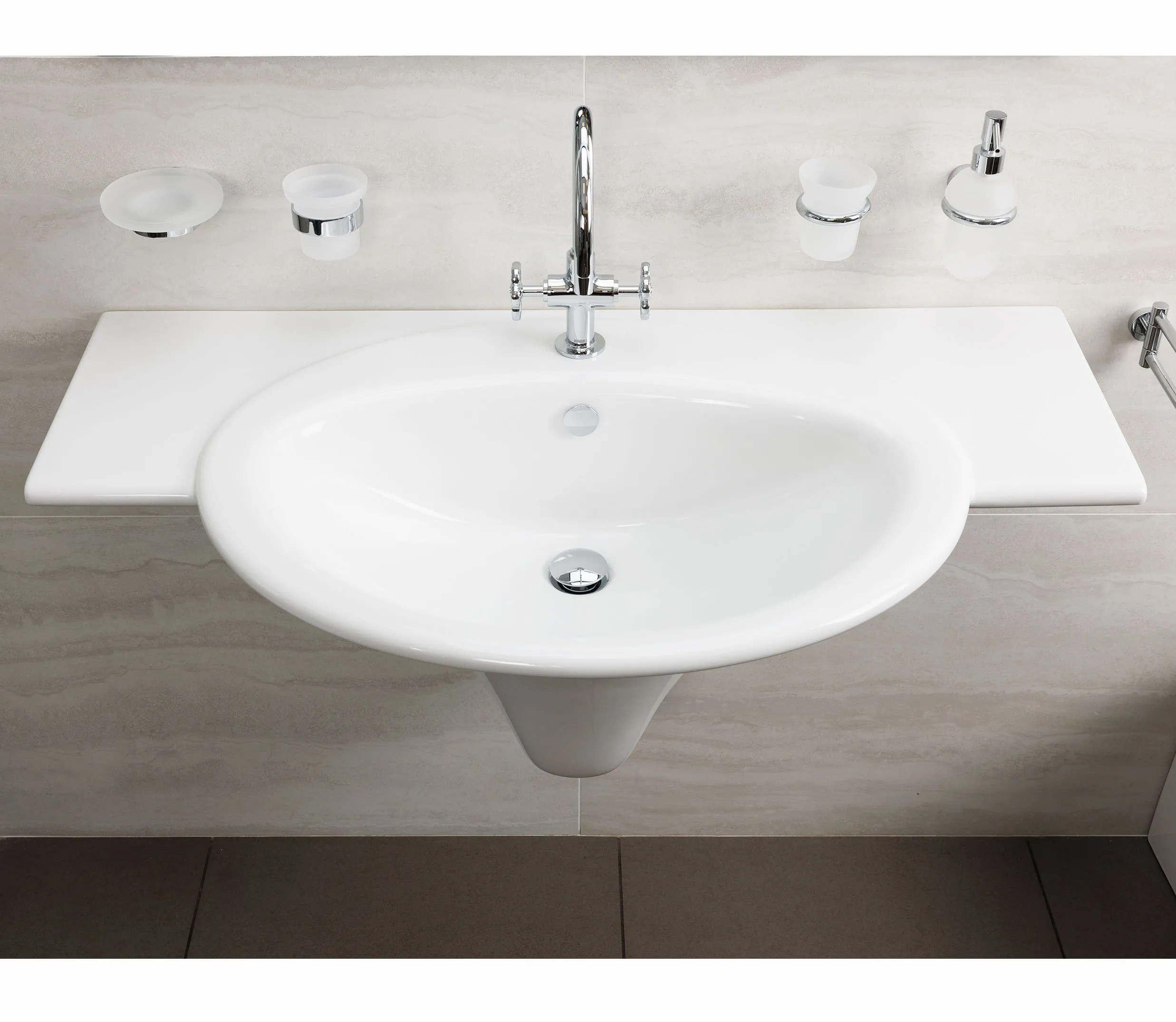 Раковина подвесная или накладная HATRIA SCULTURE YR3801, размер 110х60 см, цвет белый, с отверстием перелива, одно отверстие под смеситель готово. Монтаж с пьедесталом (арт. YR3901), подвесной полупьедесталом (арт. YR4001), так и свободно без постаментов или на столешницу. В комплекте с крепежными элементами. Пьедесталы для раковины в комплект поставки не входят.
