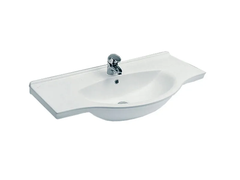 Раковина подвесная\встраиваемая HATRIA SOPHIE Y0HC01, цвет белый, размер 95х50x19.5 см. Раковина с отверстием перелива, поставляется под смеситель на одно, по запросу на три отверстия. Монтируется на стену или мебель. Крепежные элементы (2 штуки), сифон, донный клапан и смеситель приобретаются отдельно.