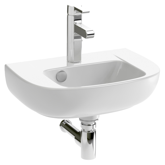 Компактная раковина с одним отверстием под смеситель дополнит интерьер ванной комнаты в современном стиле.
