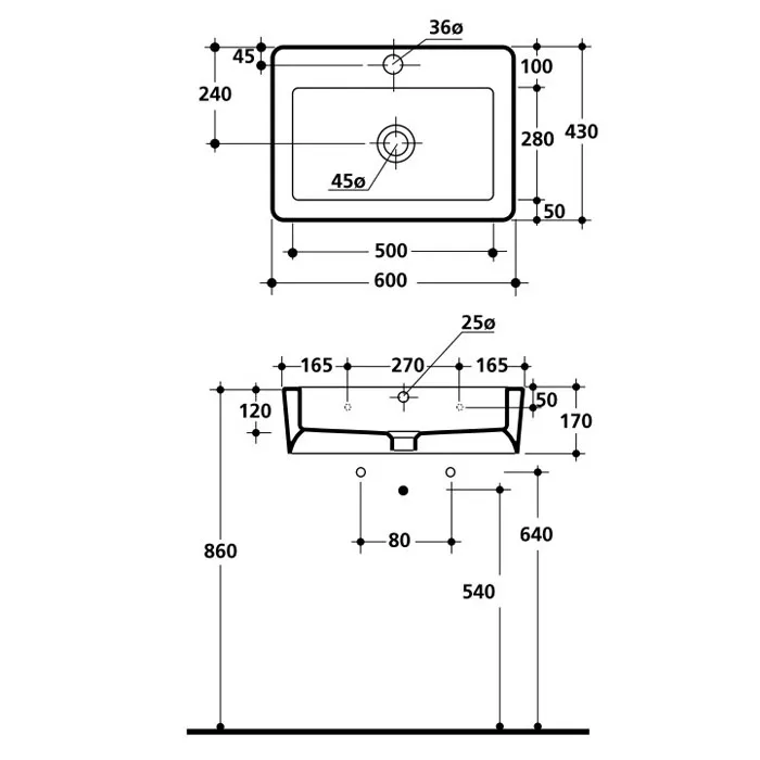 - Отверстия под смеситель: 1