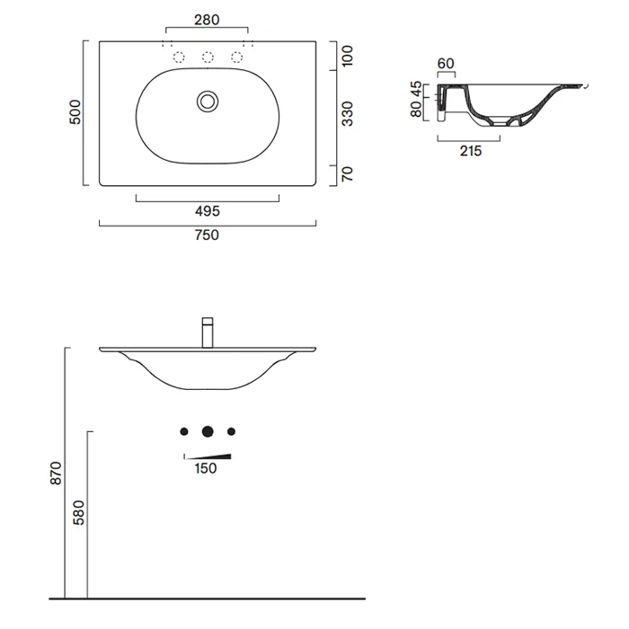 - Отверстия под смеситель: 1