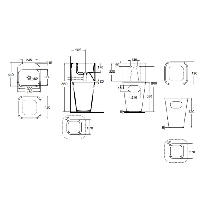 Раковина подвесная Azzurra Tandem 44х43см без отв. под смеситель, белая, TALP04443T00BI/(ULI200/1 bi)*0