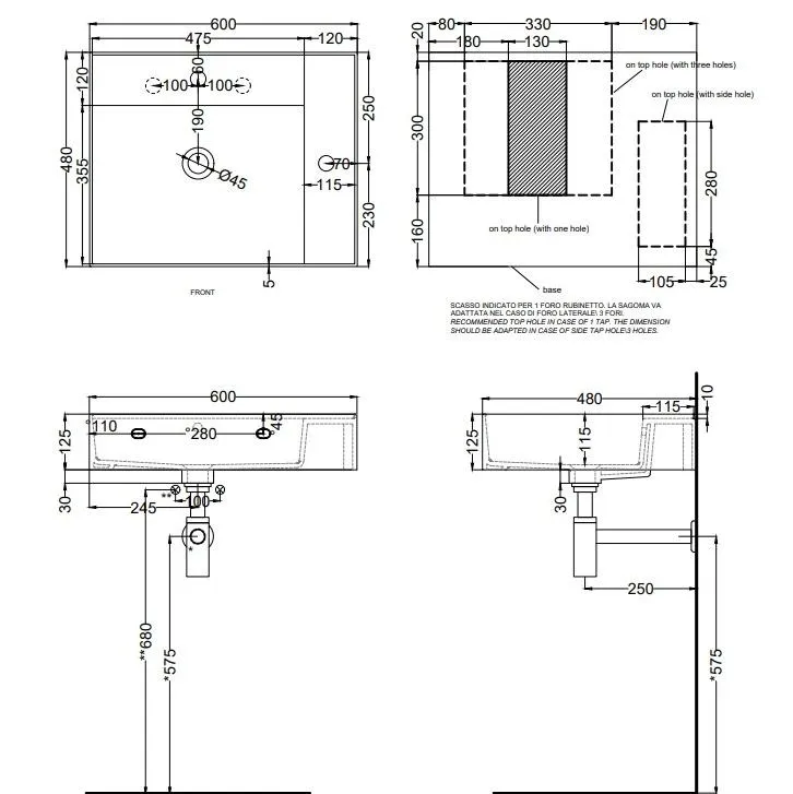Раковина подвесная Cielo Enjoy EJLA60 PM.